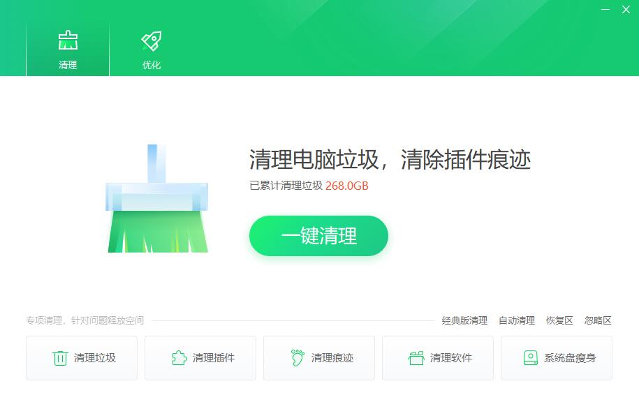 本软件提供360清理及360优化的功能,合二为一,使用方便。去除无用文件,去除无用后台,后台tray不再驻留,不捆绑流氓软件,简便实用,满足正常需求。