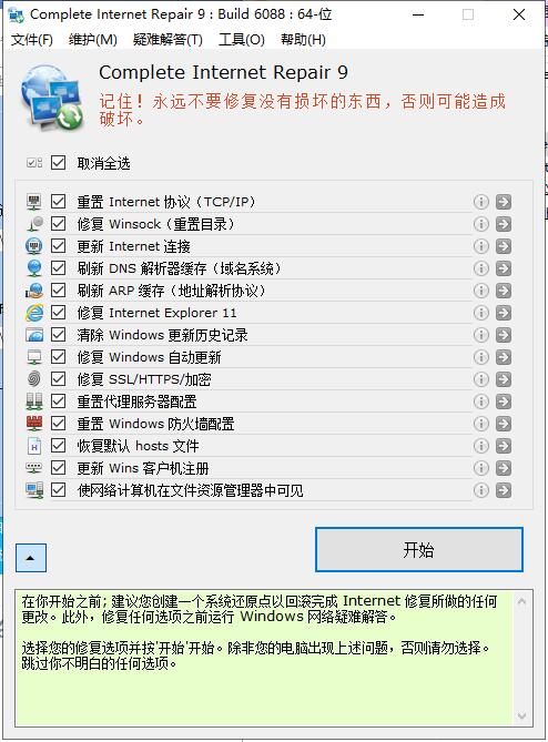 Complete Internet Repair是一款非常好用的网络修复工具。用户可以使用 Complete Internet Repair 对网络故障进行一键修复,一键帮你修复大部分常用网络故障,不过要记住,永远不要修复没有损坏的东西,否则可能会对其造成破坏。