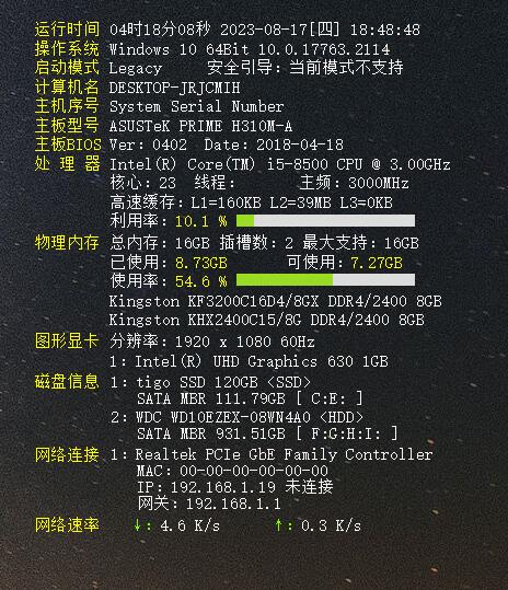 WinosInfo是一款非常实用的桌面系统信息显示工具,可以在电脑桌面上显示你的系统信息和电脑硬件信息,可以实时在桌面上显示,方便用户查看自己的电脑相关信息,支持查看CPU、物理内容使用量、宽带下载上传量统计、硬盘使用情况等多种信息,让你可以实时了解你的电脑信息。