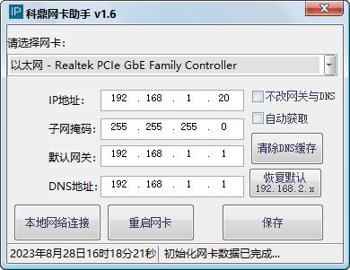 科鼎网卡助手是一个IP网卡一键设置助手,由易语言开发,可以针对不同的网络环境,一键为更改所需的网络设置值。
