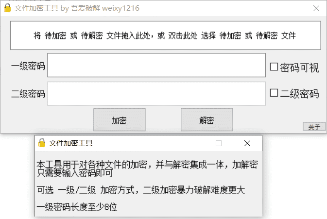 文件加密工具是一款由易语言编写的文件加密、解密工具,可选一级/二级加密。