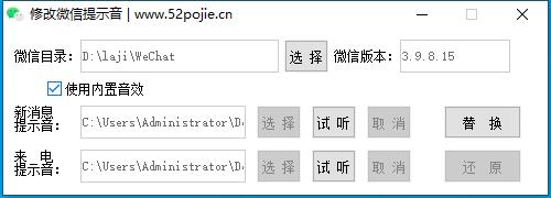 2023.11.05 1.更新v1.0.2,解决部分系统无法自动获取微信目录的问题,新增一种自动获取方式,新增拖动获取方式(如果未自动获取到微信目录,拖动微信快捷方式到软件界面即可),另外增加手动选择方式。