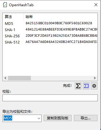 非常方便的检查器,只需要点击一下,就能把求和文件导出到剪贴板或者文件里