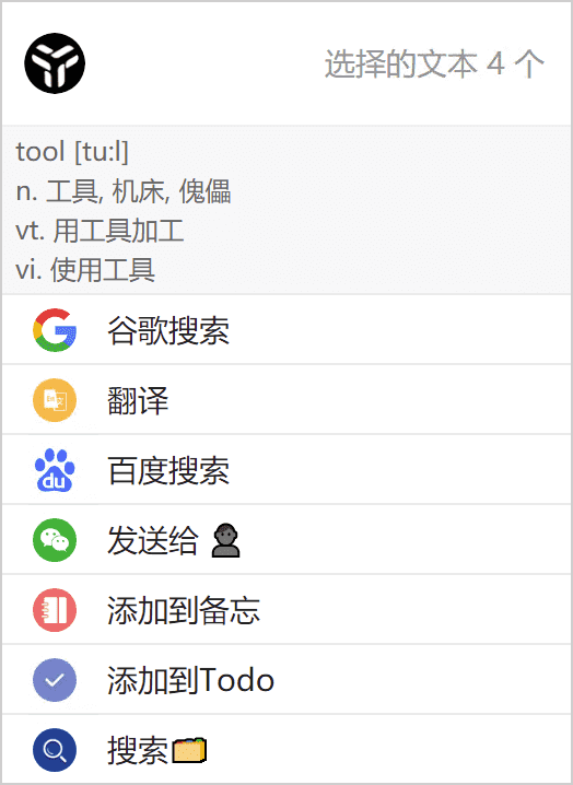 可以通过鼠标右键/中键(可配置),快速打开 uTools 超级面板,uTools 会根据当前选择的内容(文本、截图、文件、文件夹)自动匹配已安装的插件供你选择。与平时使用右键类似的习惯,uTools 超级面板却能为你带来完全不一样的体验。