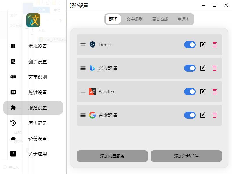支持多家翻译软件接口,可以自由切换不同的翻译引擎