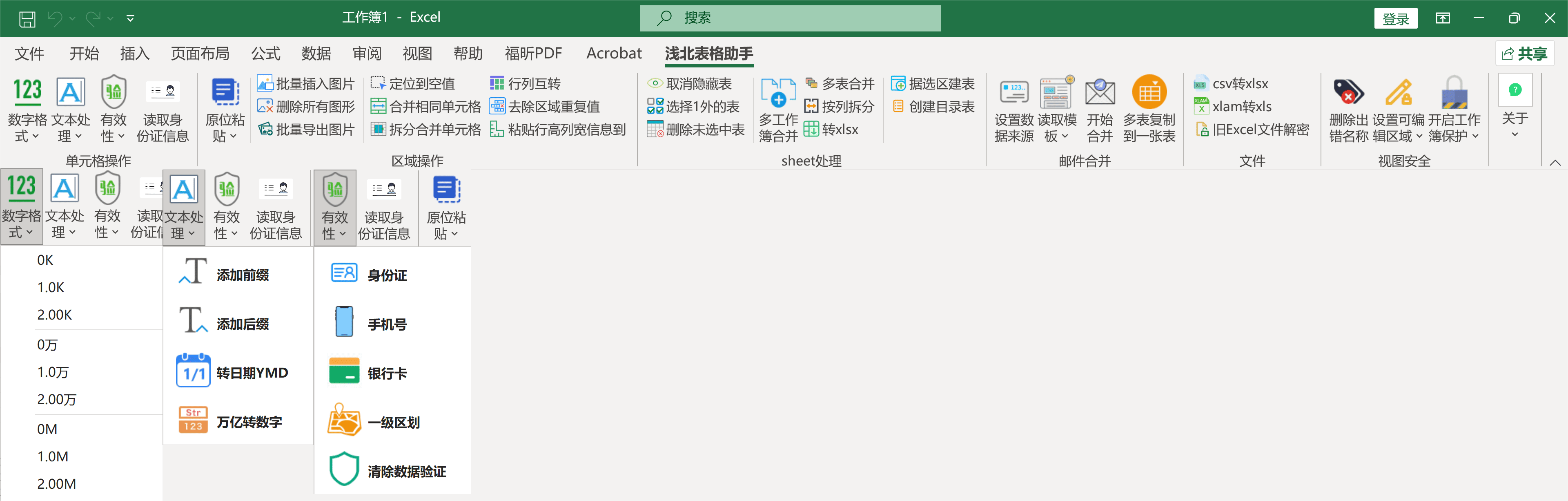 浅北表格助手是一款免费开源的微软ExcelWPS表格插件,使用VBA开发的一款Excel 小插件,类似方方格子,帮你完成如批量合并工作簿、批量合并工作表40多个功能。