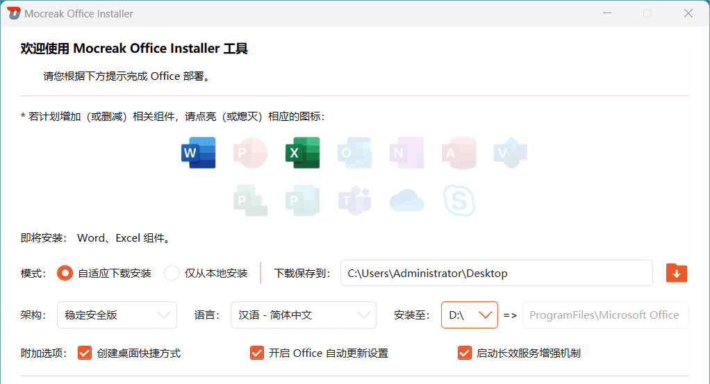 Mocreak是一款可一键自动化、无人值守下载、安装、部署并激活 Office 的神器。