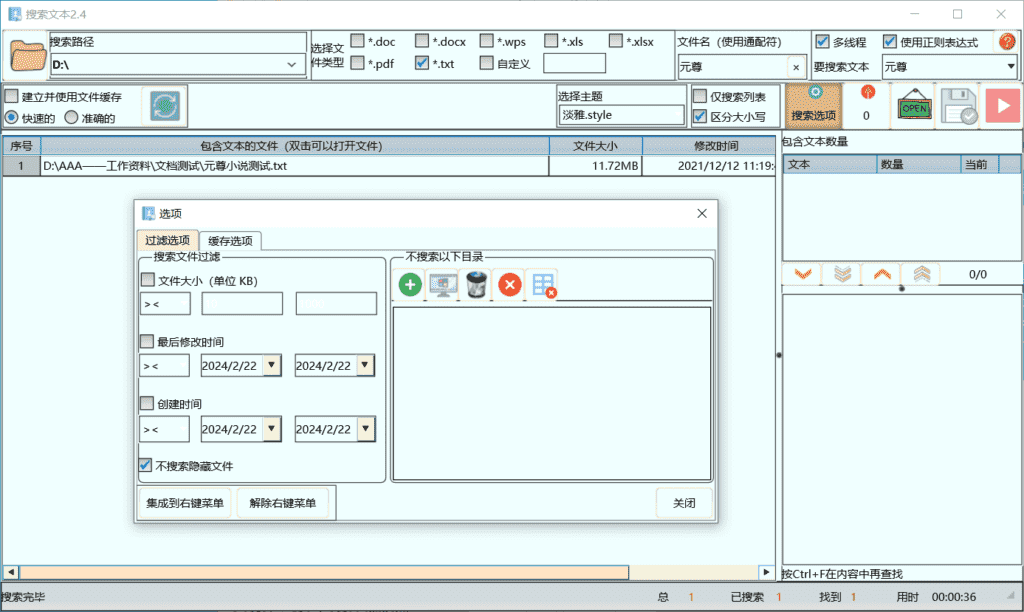 搜索文本是一款可以从word、wps、excel、pdf和txt文件中查找文本的工具,简单实用,完全不逊于Everything搜索工具。