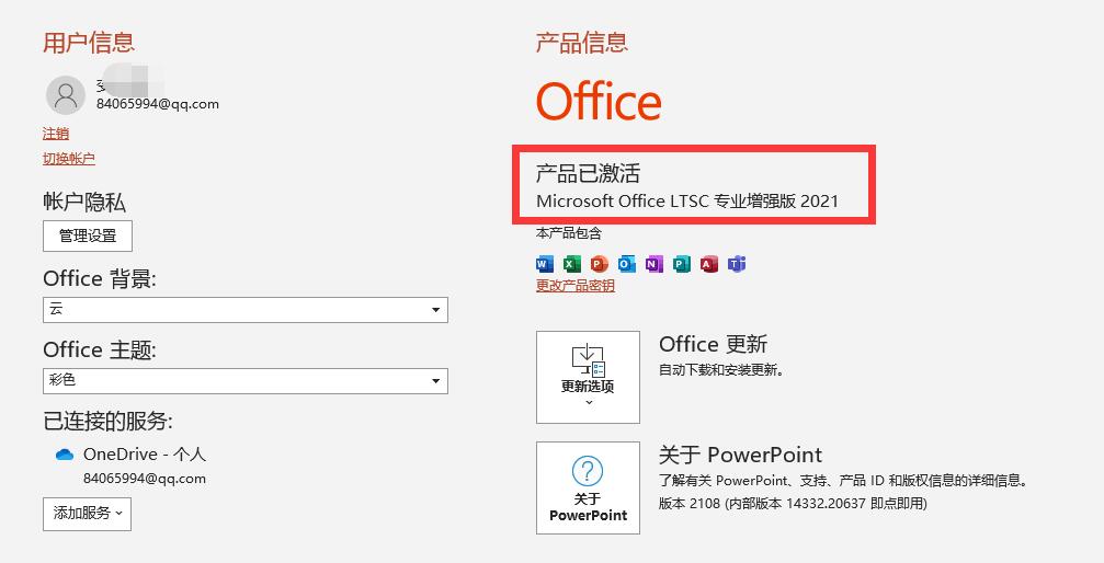 程序默认安装 Word、PPT、Excel、Outlook、OneNote、Access 六件套。