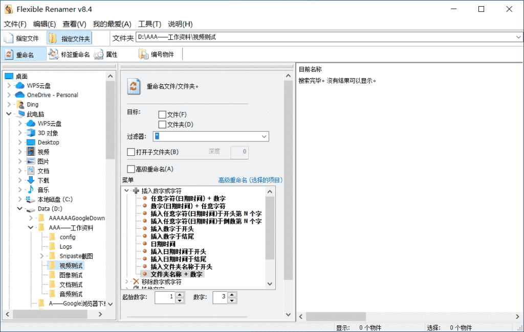 提供了多种重命名选项,比如:删除数字或字符串、替换字符串、插入数字、转换字符、组织数值等