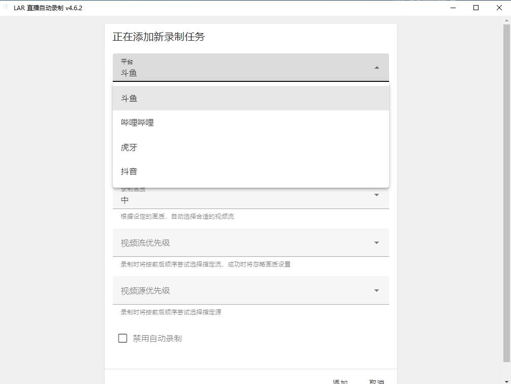 5、点击添加频道,配置要录制的直播间。可添加多个直播间。可以自动录制 抖鱼,B哩B哩,唬牙,豆音等平台直播视频。