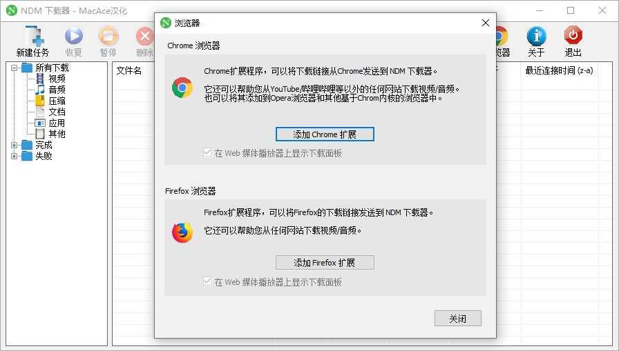 可以添加浏览器扩展,接管嗅探下载网页上的视频/音频文件。