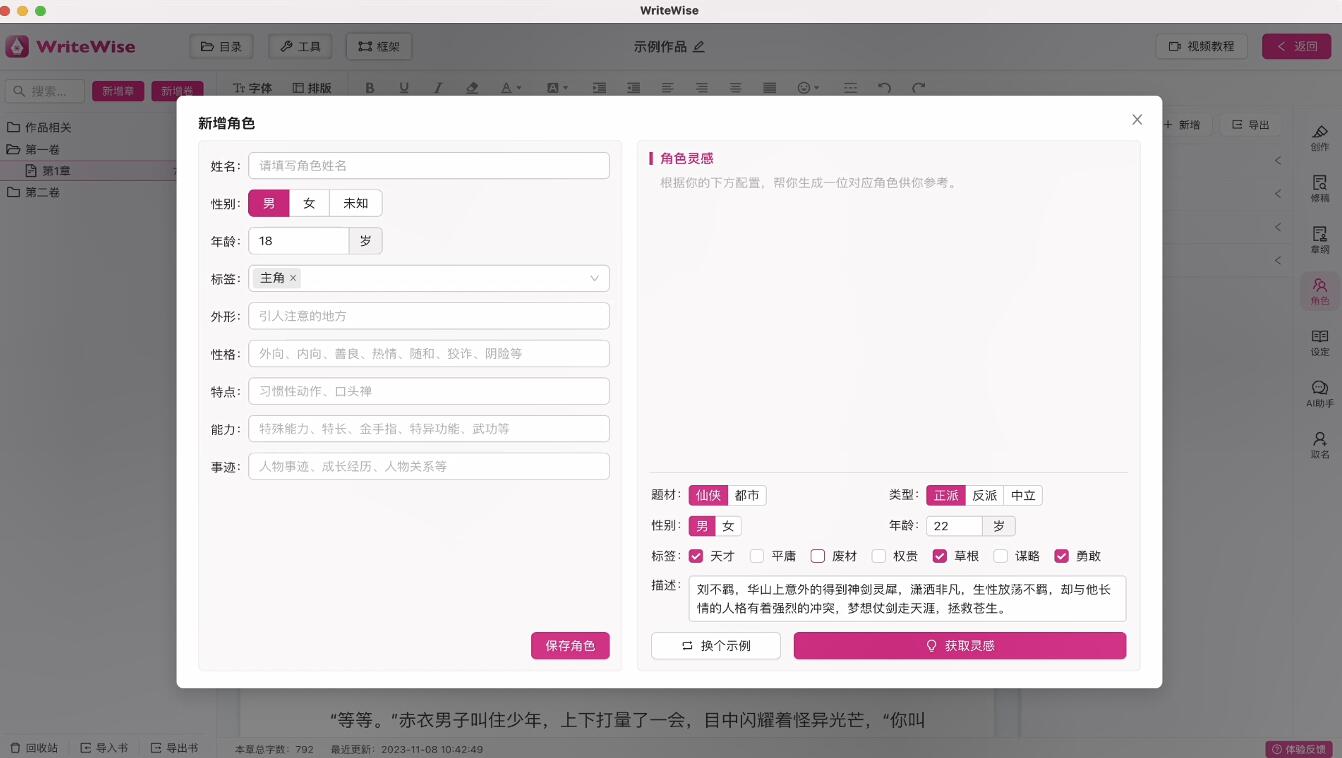 WriteWise是国内知名的听书和播客平台喜马拉雅旗下的团队推出的一款专业的 AI 小说和网文创作工具,致力于帮助用户提升写作效率和质量。通过智能推荐和编辑功能,能够快速生成高质量的文章和内容。此外,它还提供了语法检查、词汇替换、段落重组等功能,助力用户改进文章结构和表达方式,感兴趣的可以试试这款Write写作软件。
