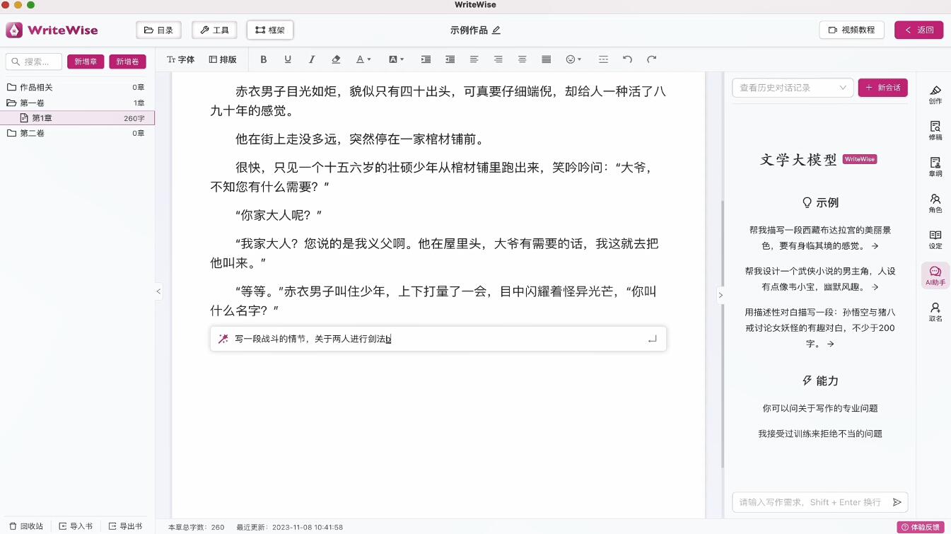 AI写作助手:内置AI写作对话助手,可询问任何关于创作的问题