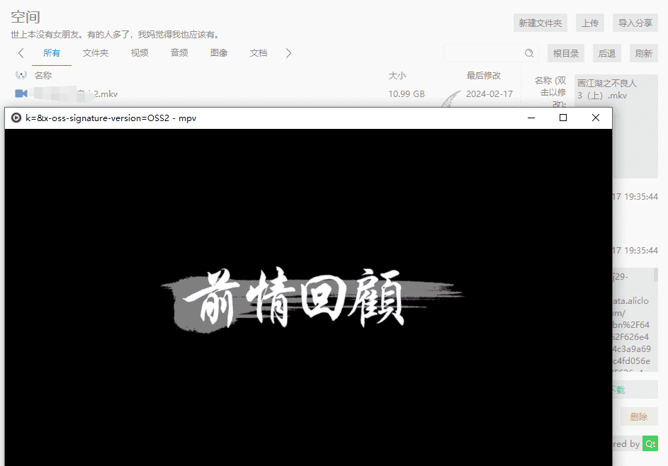尤其值得一提的是,软件内置了MPV、VLC、Porplayer三款解码能力极强的播放器,可以直接播放网盘中保存的视频!