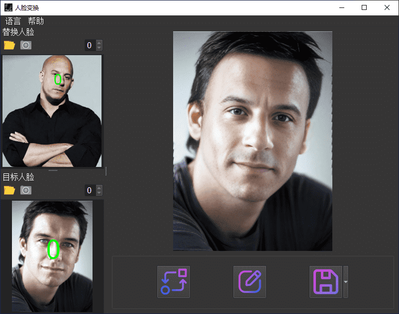面部交换:可以选择要交换的面孔,并应用该面孔到目标图像中,实现面部交换效果