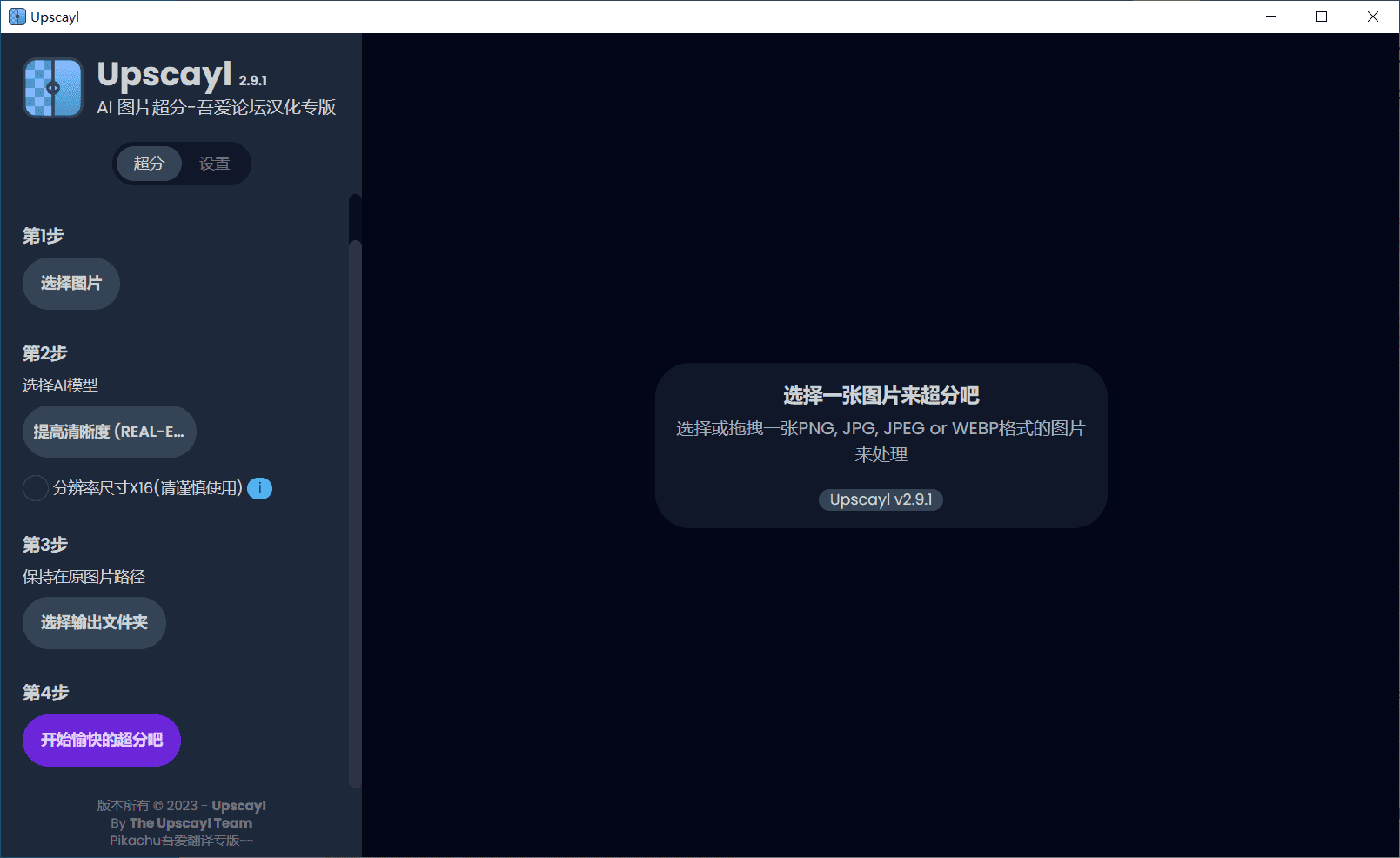 支持多种文件格式:Upscayl 支持多种图片文件格式,包括 JPEG、PNG、BMP、TIFF 等等,用户可以按需选择输入和输出文件格式。