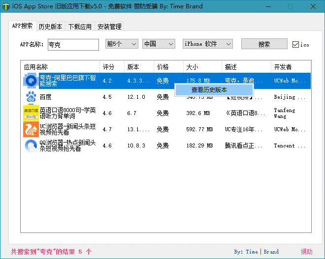 iOS任意版本号APP下载,苹果应用旧版本下载工具,下载iOS旧版应用,简化繁琐抓包流程。一键生成去更新IPA(手机安装后去除App Store的更新检测),一键生成伪装版本IPA(通过更新抓取已停止的APP)