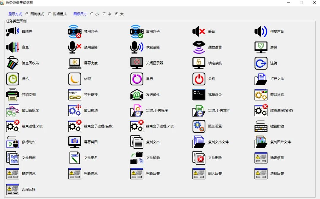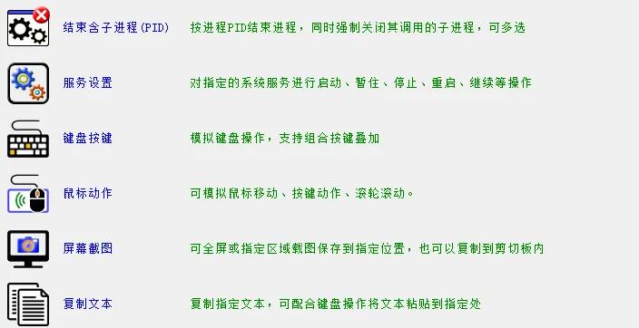 屏幕亮度、开关进程、锁屏、休眠、重启、打开网页链接、发送邮件、运行命令行、键鼠操作等等,轻松搞定。
