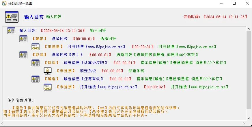 这种消息提示框的任务,还支持限时应答和限次回答的功能,消息内容还可以编辑格式。
