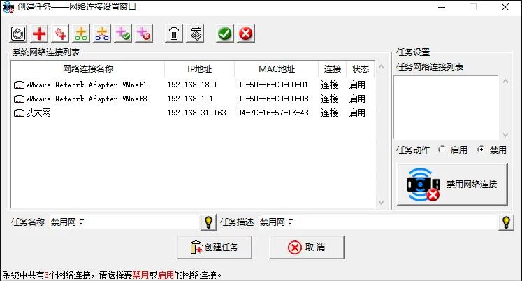 同理,你想定时断网,可以创建一个禁用网卡的任务。