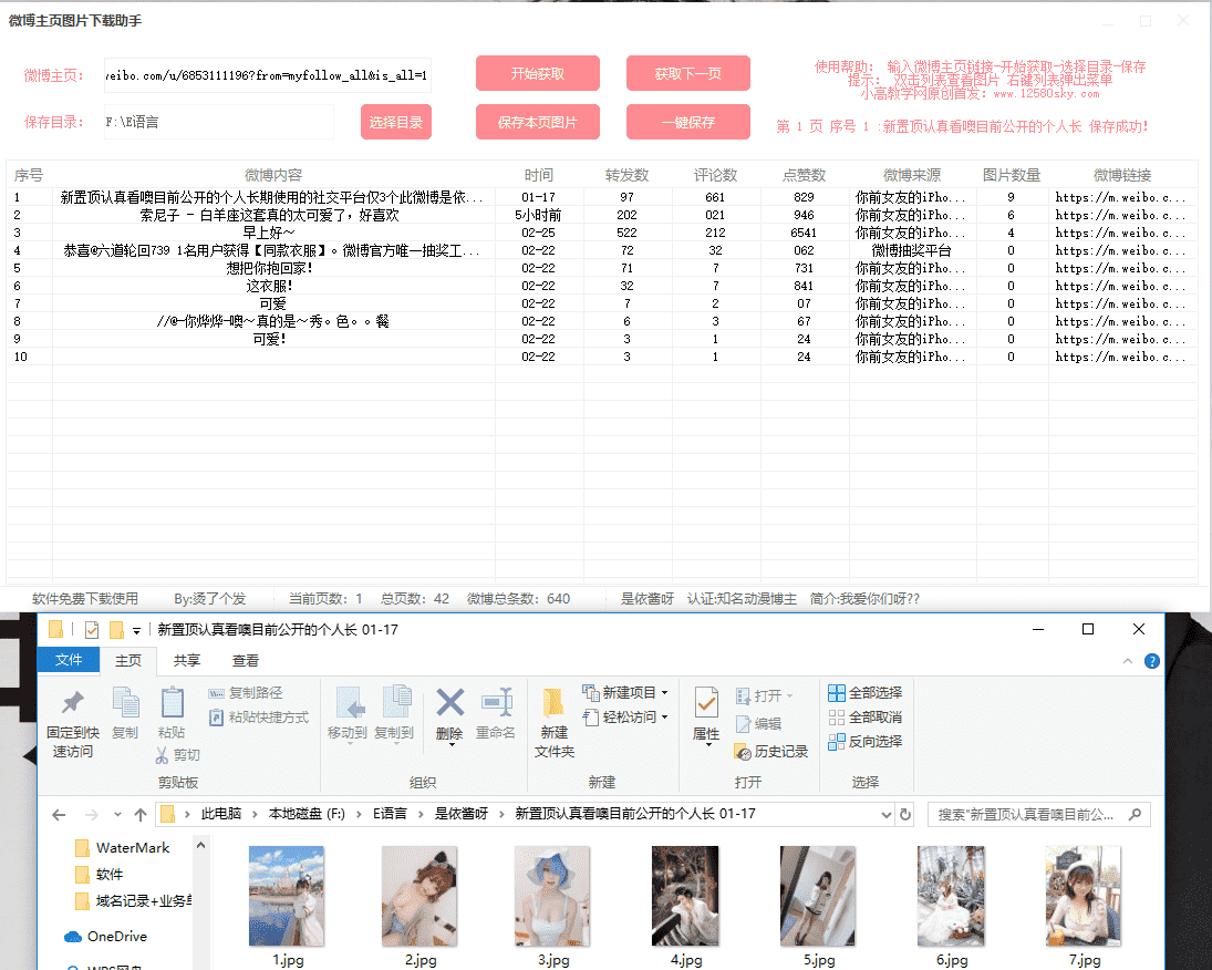使用帮助:输入微博主页链接-开始获取-选择目录-保存