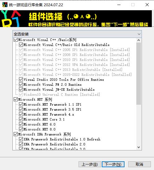 包体继承了.NET 离线运行库合集的组件,在原有基础上添加其余PC必备运行库,多年的维护经验使得该系列运行库从安装和检测上趋于成熟。