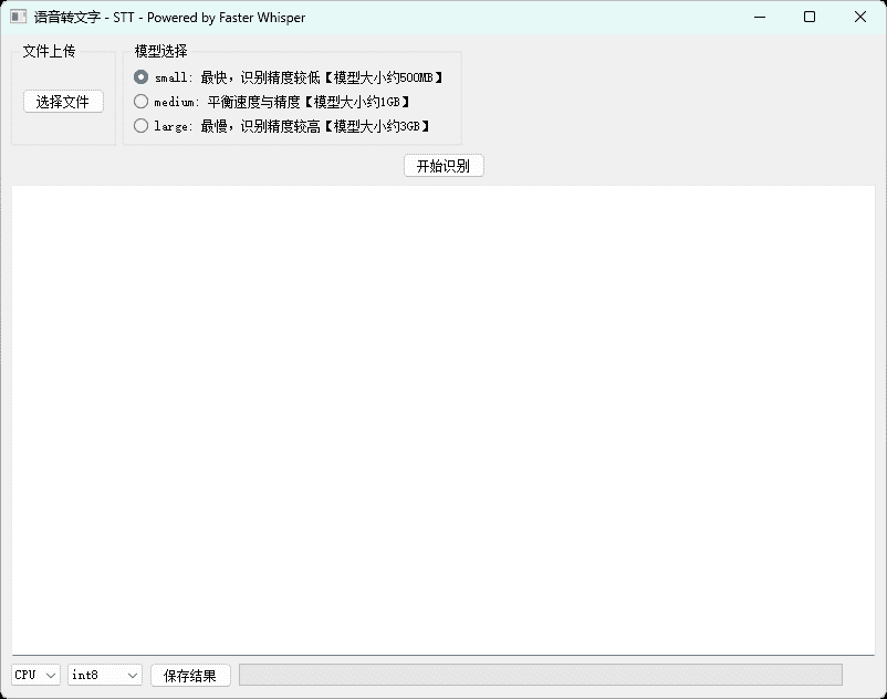 最近接到一个需求,需要把录音转换为文字,一看网上几款常用的工具,想不到都是收费的;找了找,发现基本上都需要云端api,仅有的几个本地的都需要使用GPU中的cuda计算。因此,开发了这么一款语言转文字的小工具,基于Faster Whisper模型,在cpu上也能达到不错的效果。
