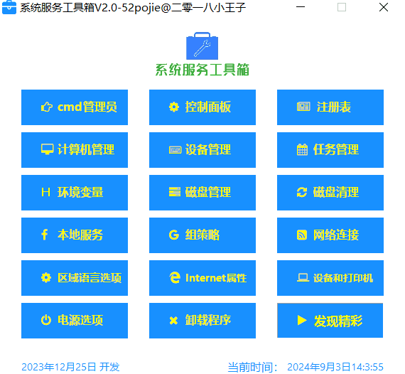 系统服务工具箱是一款非常实用的电脑系统工具箱,17项系统常用服务快捷启动,适合小白,仅700KB不到,为了方便用户调用这些系统命令。