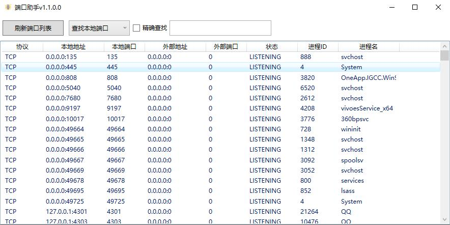 端口助手是一款基于netstat -ano实现的小工具,支持根据端口找进程、根据进程找占用端口。用户可以通过输入特定的端口号,快速找到占用该端口的进程信息。可以快速结束进程的小工具。这对于需要管理和监控网络连接的系统管理员或开发人员来说,是一个非常方便的功能。