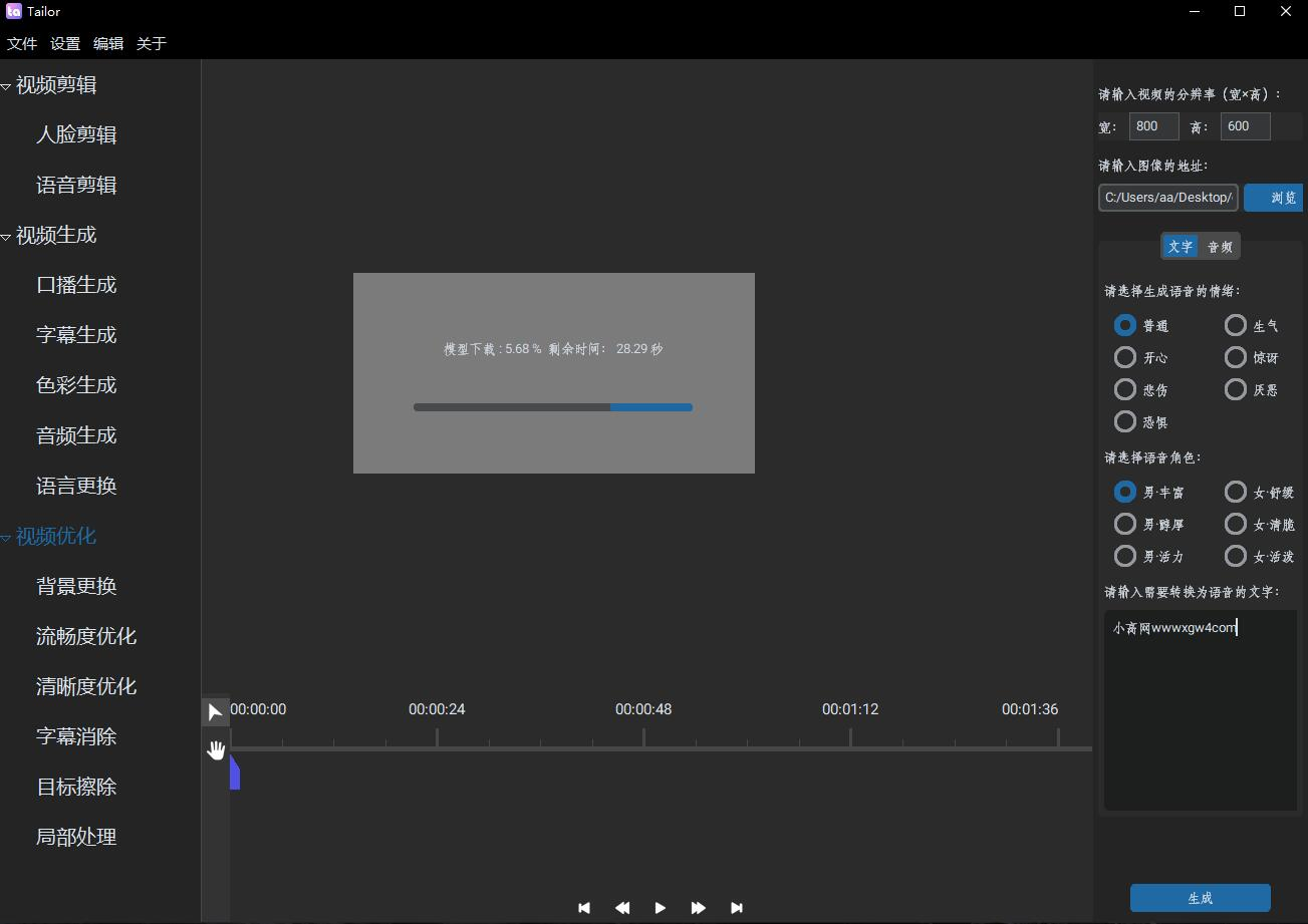 视频生成 口播生成 只需上传一张带有人脸的图像,选择喜欢的语音音色,输入想要生成的文字内容,Tailor 就能瞬间为你生成一个对应语音口型的有声视频。让你的创意轻松实现,打造出独一无二的视频作品! 字幕生成 通过智能识别音视频内容,Tailor 能自动将其转化为文字,并提供多种字体和颜色供你选择。字幕将与视频完美同步,让你的视频更加易懂,更具吸引力。 色彩生成 Tailor 拥有一键式黑白视频上色功能,能让那些陈旧的黑白视频瞬间焕发出绚丽的色彩。仿佛时光倒流,让经典重现生机! 音频生成 该功能可以为静态图和文字赋予生命,将它们转化为生动的视频。静态图将变成视频的图像部分,文字则通过文字转语音技术变成视频的语音部分,让你的创意无限延伸。