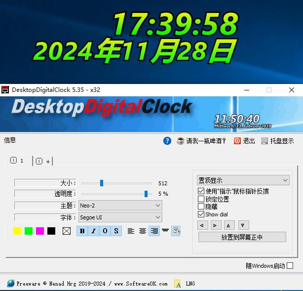 DesktopDigitalClock 是一款轻量级的桌面数字时钟工具,专为希望在桌面上显示时间和日期的用户设计。它通过提供简洁的数字时钟界面,帮助用户随时查看当前的时间和日期。DesktopDigitalClock 操作简单,功能实用,适合个人用户和办公环境使用。