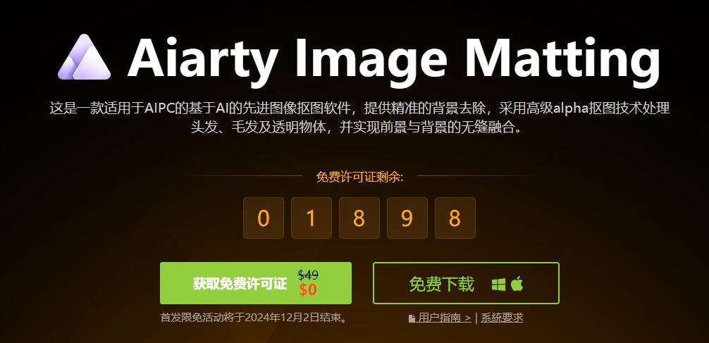 这是一款适用于AIPC的基于AI的先进图像抠图软件,提供精准的背景去除,采用高级alpha抠图技术处理头发、毛发及透明物体,并实现前景与背景的无缝融合。