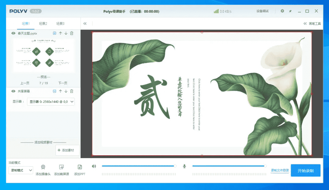 POLYV录课助手是一款免费的电脑录屏工具,内置PPT导入、图片导入、画笔、直播模式等多项功能,仅需一款就能搞定视频录制和内容制作,大幅提高录屏效率。