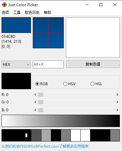 Just Color Picker是一款小巧的屏幕颜色取色器,支持五种颜色代码格式,只需将鼠标悬停在屏幕上即可显示颜色数值。适用于平面和网页设计等领域,具有平均色彩取样、放大镜和键盘控制等功能。软件还提供颜色表用于保存和再利用颜色样本。