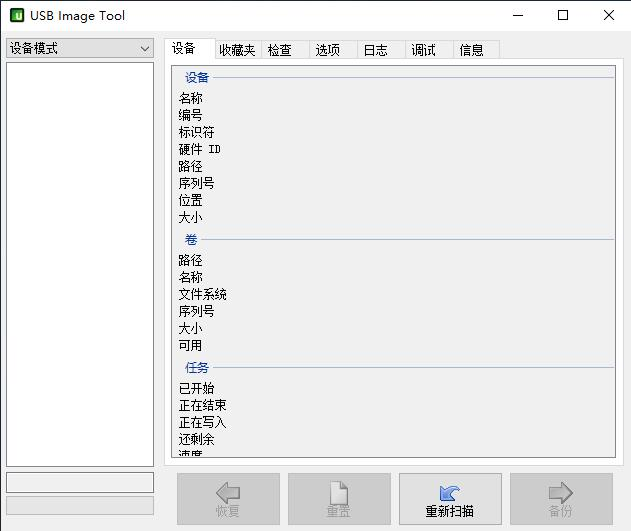 创建与恢复镜像:轻松创建 USB 存储设备的镜像文件,以及将镜像文件恢复到 USB 设备上。