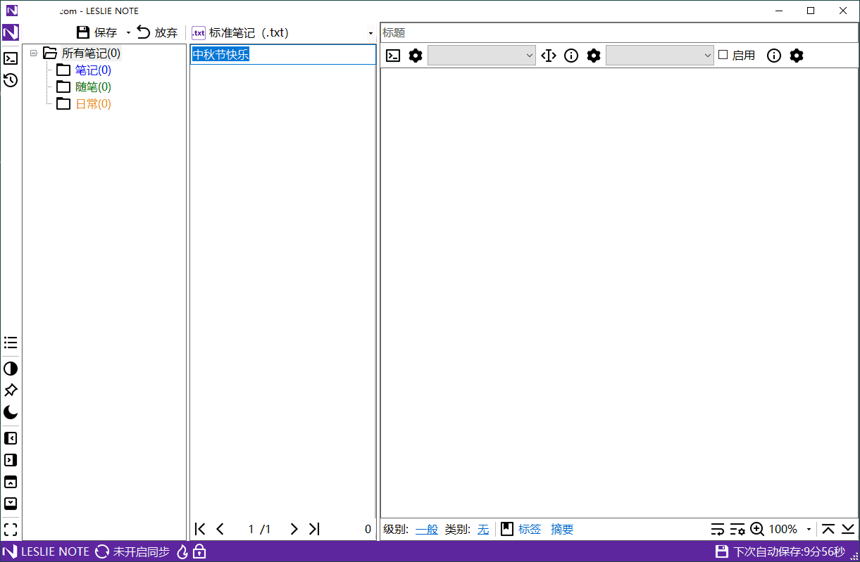 LESLIE Note是由个人开发的一款本地笔记软件,外观类似OneNote软件,支持多笔记簿、附件加密、历史版本等功能,数据完全本地存储,界面做的还不错,原生便携,是一款轻量的免费绿色软件。