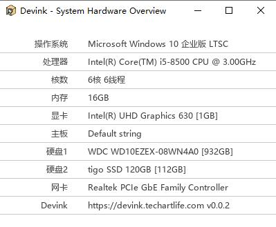 Devink机查查一键获取系统全貌:操作系统、CPU、GPU、主板、内存、硬盘、网卡等硬件信息,一目了然。完全免费,无需注册,无功能限制,永久使用无忧。仅 3MB 体积,无需安装,绿色便携,随时拷贝即用。无依赖、不写注册表、无广告干扰,用完即可删除,干净利落。