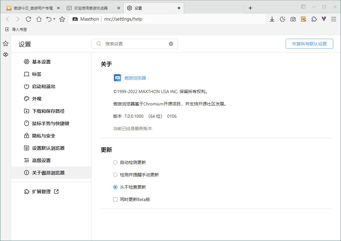 遨游浏览器采用Google内核,官方支持便携,启动速度可以,类原生界面,功能拓展,支持遨游同步,开发使用更简单、便捷、用户体验更流畅的新科技浏览器,超强内核无缝兼容,兼容Chrome插件库,海量插件任你玩!除了官方搞的没卵用的区块链,其他的方面都还不错。