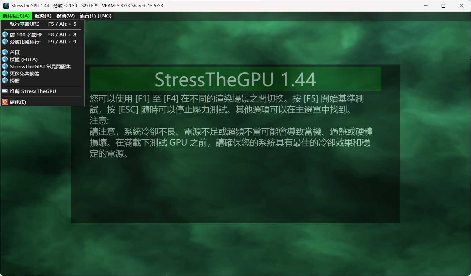 StressTheGPU 是一款轻量级、免安装的便携式 GPU 压力测试工具,能够在极端负载下评估显卡的稳定性与性能表现。它提供低、中、高三种测试强度,适配从集成显卡到高端型号的不同硬件,帮助用户检测过热、故障或超频后的可靠性。测试过程中可实时监控 FPS 等关键指标,并内置基准测试模式,通过运行 60 秒复杂场景生成可在线对比的分数。无论是新装显卡、更新驱动,还是进行超频验证,StressTheGPU 都能在不占用过多 CPU 资源的前提下,为普通用户与专业人员提供简洁高效的显卡诊断体验。