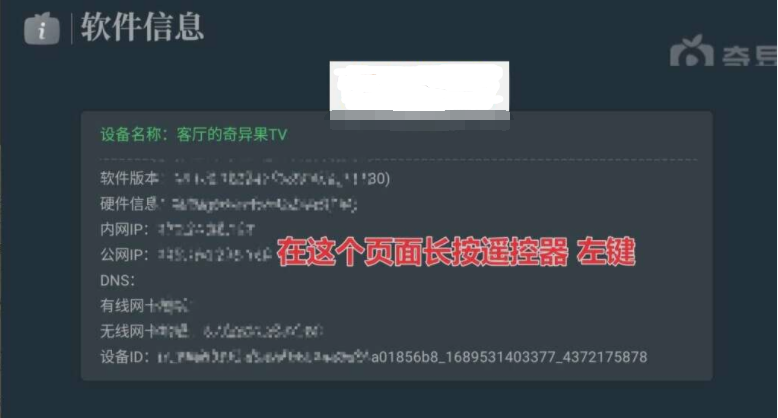 3,在软件信息页面,长按遥控器左键。(如果你是电脑操作,则是长按键盘左键←)
