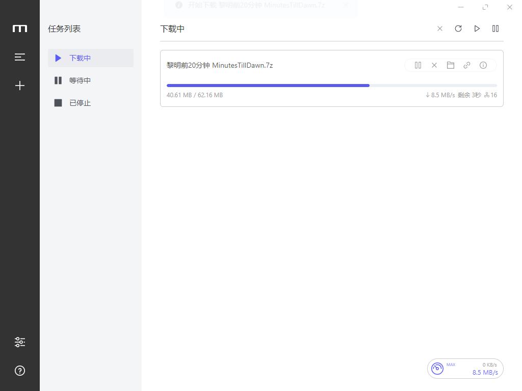 然后返回Motrix工具就可以看到正在下载刚刚解析出现的文件了。