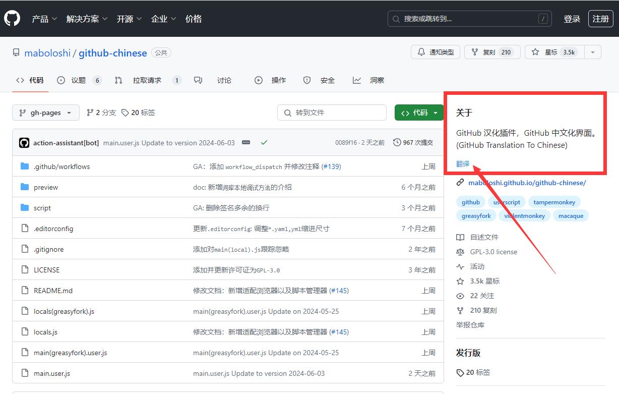 步骤二:打开 插件安装地址: GitHub 中文化插件 – GreasyFork 托管【发布版】(仅大版本更新)