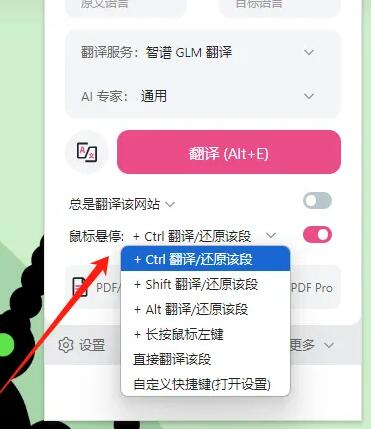 除全文翻译外,插件还支持悬停翻译,设置一下悬停翻译快捷键,即可仅翻译指定段落,精准打击,指哪打哪。