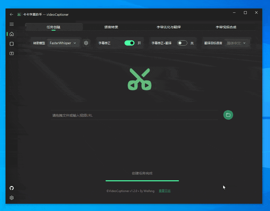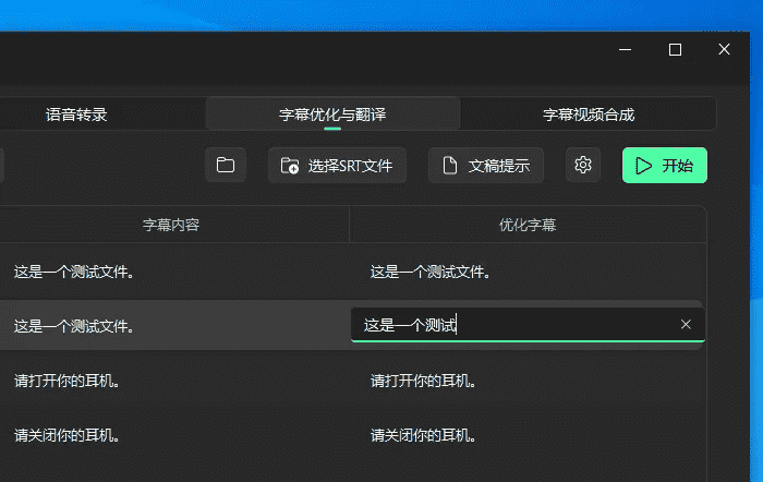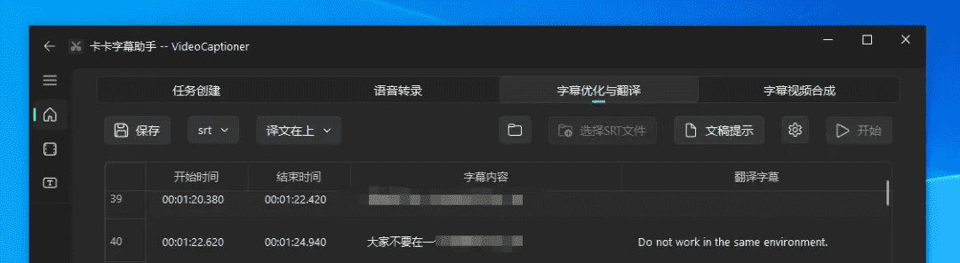 软件使用就比较简单了,把需要识别的视频或者音频文件拖进来,点击开始,就会对其进行自动处理,使用本地模型的情况下,速度快慢就看设备性能了。