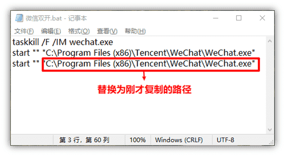 保存文件后重命名把后缀.txt改为.bat,注意后缀是为.bat,此时双击看看,是不是成功开启了多个微信扫码窗口呢?