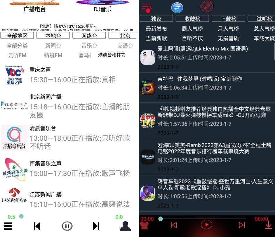 软件功能:收音机集成 DJ歌曲舞曲 儿歌学前教育 戏曲广场舞等