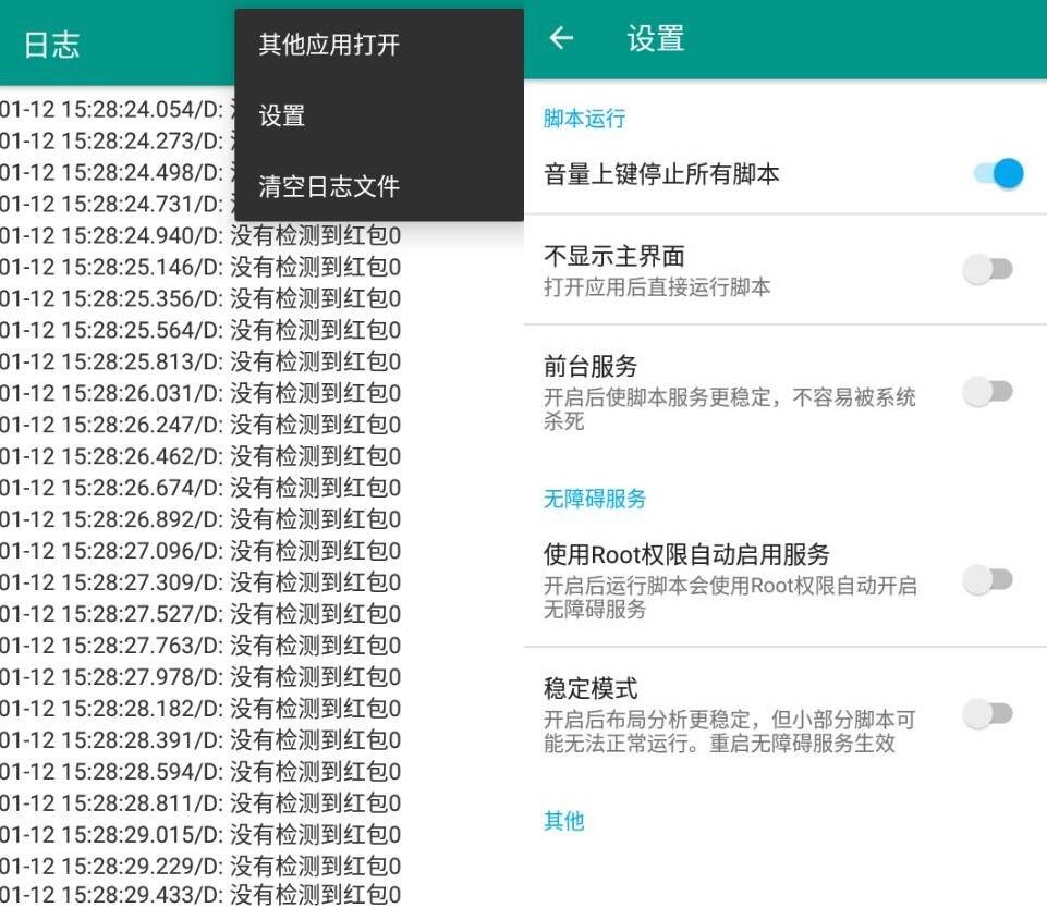 3、抢完红包后会等2秒后,会自动返回,运行起来后不用辅助操作