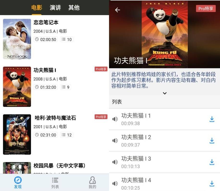 英语听听app是一款为用户提供丰富的英语听力经典练*的平台。用户可以在这里通过经典英语电影、演讲和记录片来好好考验一番自己的英语听力,软件选择的片源都是大家耳熟能详的电影和演讲,这样更能够很好的在熟悉的环境下帮助到大家。同时为了方便大家在以后的日子里更好的学习好英语听力,软件更是提供有下载功能,以后可以通过下载片源后不断反复练习自己的英语听力能力,如果你喜欢这种形式的学*,那么就快来下载这款实用的练*听力的软件吧。