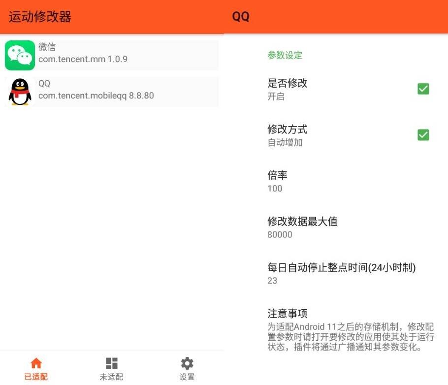 运动修改器是Xposed框架模块,支持以一定的倍率修改微信运动、支付宝、拼多多、乐动力、三星健康、支付宝、春雨计步器、走向健康、KEEP、钉钉、微博、华为健康、步多多、平安健康、淘宝等的运动步数,支持自定义倍率,自定义开关,同时不影响其他微信QQ其他功能的正常使用比如微信摇一摇。
